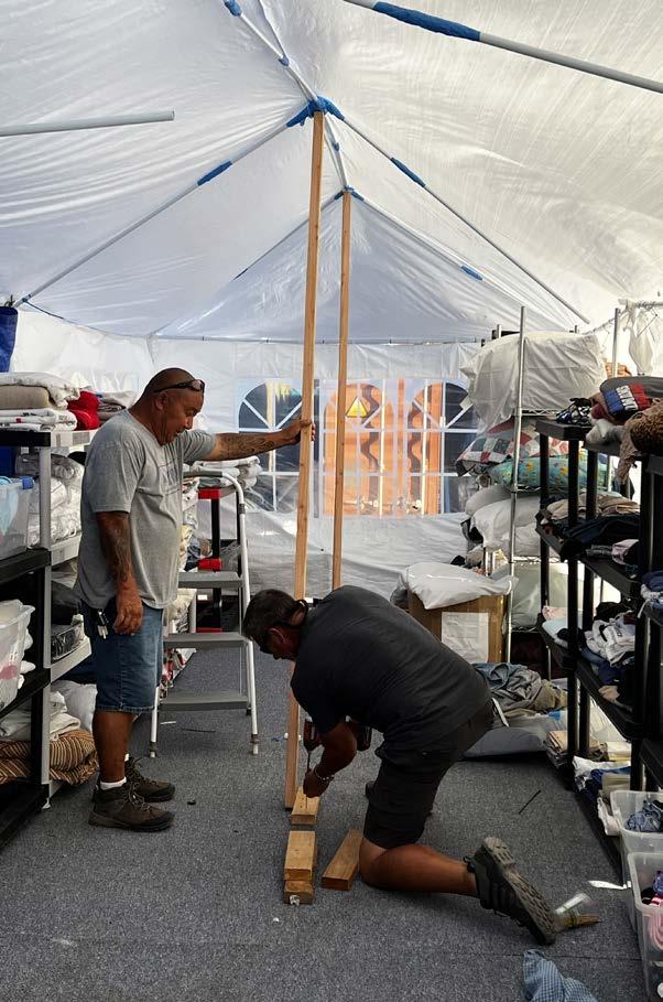 Within a matter of days, we turned a dusty open lot into a fully functioning hub with large tents, plywood flooring, pods for sorted goods, containers for secure storage, volunteer respite tents, portpotties, and wind blocks. We also quickly formalized safety protocols and volunteer engagement procedures, secured equipment and equipment operators (flat bed truck, forklift), and mobilized our networks to secure donations based on what communities were asking for—all without any paid positions or grant funding. We sustained these efforts Monday through Saturday through midSeptember.
