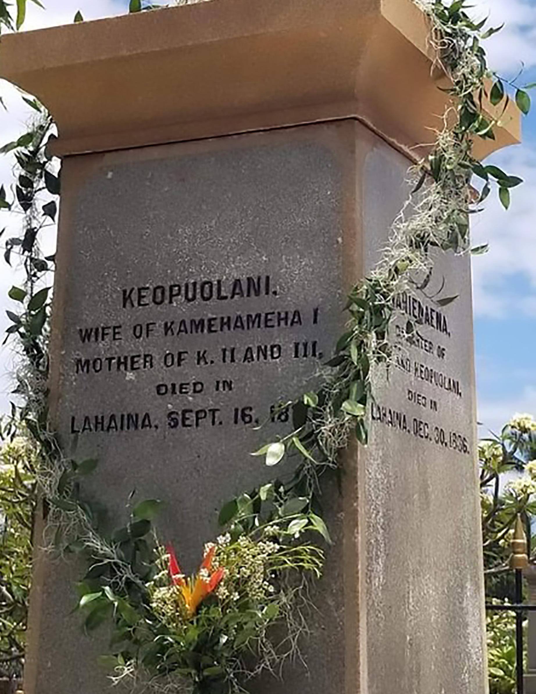 A young wahine born on Maui and raised at 547 Waine’e street near Waiola Church in Lahaina—land of the living waters, the moving waters—grows up deeply connected to her ‘ohana and her ancestral home. Her name speaks of a sweet wafting fragrance. For a quarter of a century, her mother, Emelia Kahili (Momona) Kaina, known affectionately as “Aunty Kahili,” was the konohiki for the royal tomb of Kalanikauika’alaneookeopuolani, the sacred wife of Kamehameha nui and the mother of his heirs Kamehameha II and Kamehameha III as well as Princess Nāhi‘ena‘ena.
