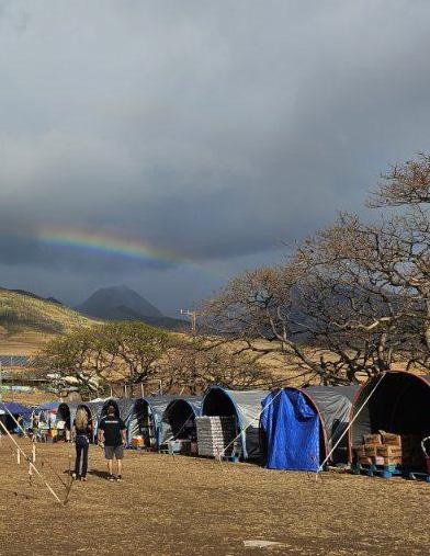 A recently completed apartment complex in Wailuku, Ogawa Apartments, was used to house fire survivors. Fran Waite worked closely with Nā Kia’i O Maui to secure donations and care for these families. Fran also connected us with Kiley, a leader at the Kelawea Mauka hub who requested Nā Kia’i O Maui’s help to build infrastructure and secure donations at Kelawea Mauka