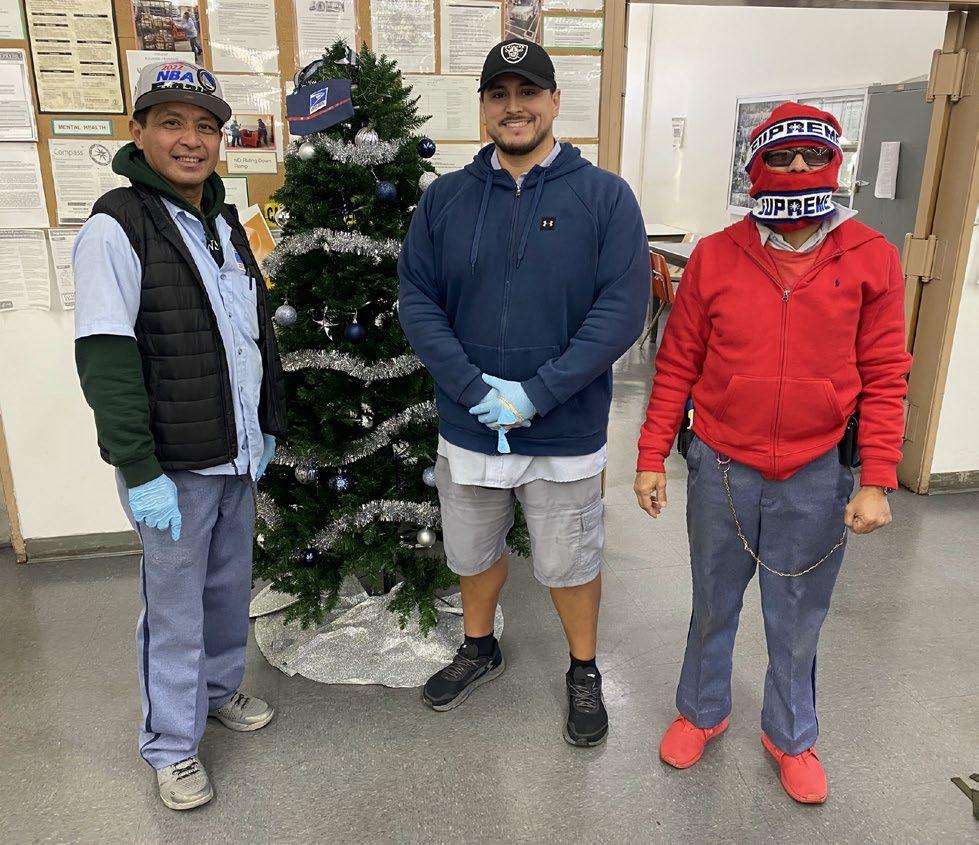 Pittsburg carriers Ramon Reynoso, Manny Atienza, and Steward Vincent Quesada with some holiday cheer