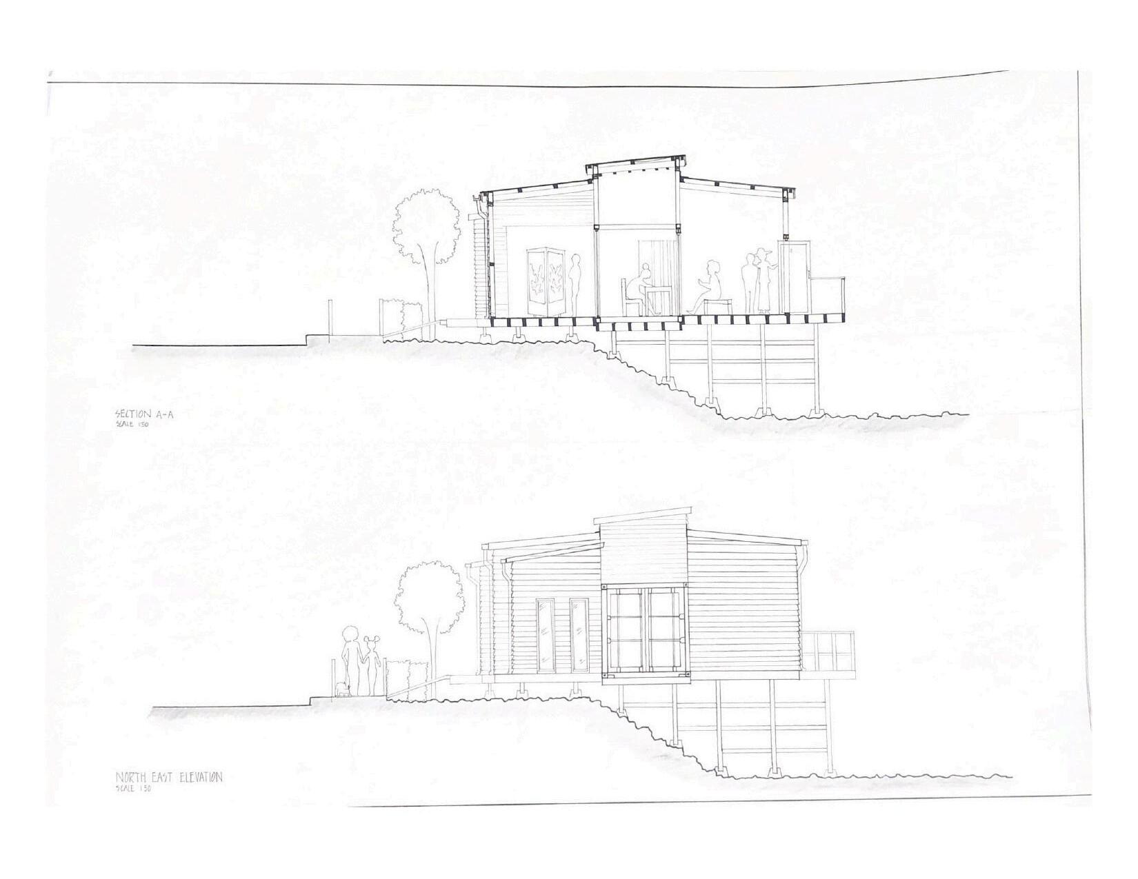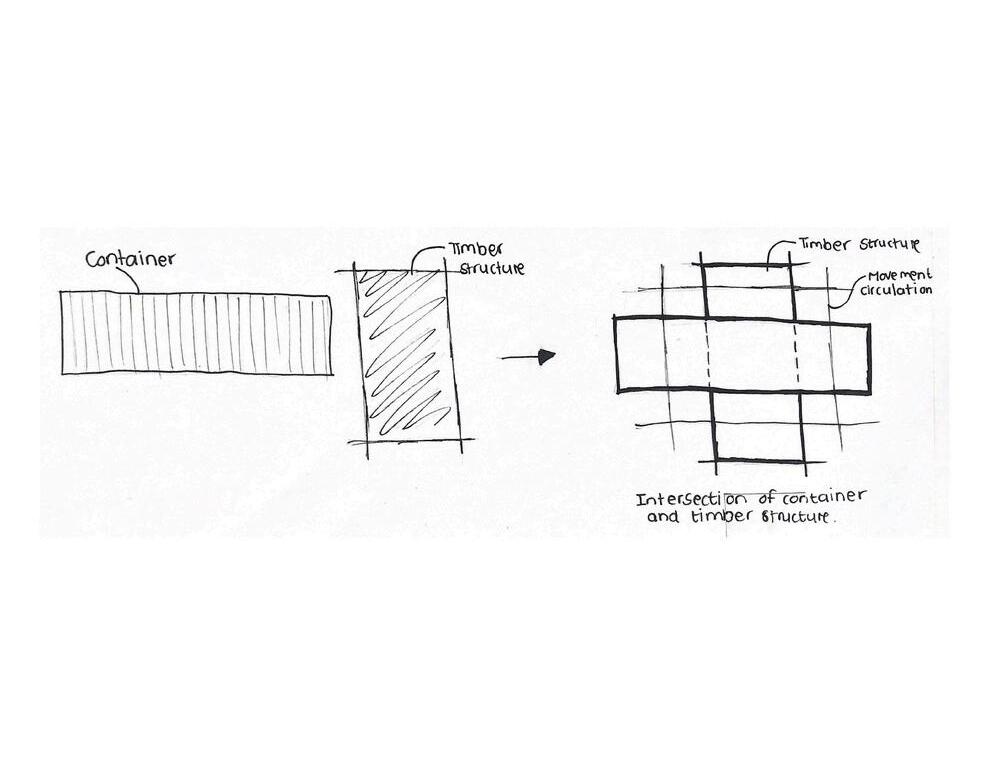 c o n t a i n e r a n d t i m b e r s t r u c t u r e r e p r e s e n t i n g t h e d i a l o g u e b e t w e e n a r t i s t a n d v i e w e r , p e r m a n e n c e a n d p e r m e a b i l i t y S l a t t e d t i m b e r