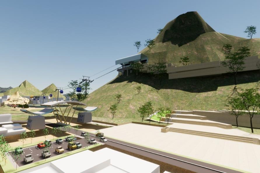 UNIVERSIDAD TECNOLÓGICA DEL PERU | UTP ALUMNOS:LeonPanta Nallely Agustina COD: 20228630 Alzamora Romero, Leila Roxany COD: 20207721 DOCENTES: ARQ. KARLA PATRICIA PALACIOS GONZALES ARQ. RENSO RODRISH CARRASCO JOCOPE Se tomo en cuenta este medio de transporte, para poder observar la naturaleza que nos rodea desde cada punto OBJETIVO Fomentar un recorrido atractivo por toda la zona agrícola + rio Diseñar uno de los puntos turísticos mas atractivos. RECORRIDO: Cerro ñañañique cerro citan TOPOGRAFIA: Montañoso Consiste en un espacio con vocación de mirador plaza en forma de anfiteatro; que aprovecha el desnivel entre la terraza inferior. Fue conceptualmente planteado como un punto de vista del entorno en el que se encuentra emplazado, se ubica en el cerro vicus en una ladera con vistas a las montañas TELEFERICO ACTUALESTADO Mirador contempla una historia, tanto haciéndole alusión a las manos de los artesanos, como la gran vista desde lo alto Al norte del anfiteatro mirador y el área de juegos se encuentra un área plana en la que se ha emplazado el parque infantil La proyección de espectáculos relacionados con la astronomía, llegada de los ovnis un gran ejemplo es el gran parque de ovnis en cusco. Se plantea generar un emocionante viaje cuenta abajo en la montaña rusa + teleférico que va a conectar con el cerro pilan Actividades ecoturísticas, se enmarcan en destinos especialmente de Efectosnaturalezafísicosy espirituales del contacto con la naturaleza, cabañas y retiros ÑAÑAÑIQUECERRO Cerro Vicus MIRADORCASA RESTAURANTECERAMICADETEMATICO ZONIFICACIÓN REFENCIAL CERRO VICUS ESTRATEGIAS ANFITEATRO, MIRADOR Y PARQUE INFANTIL ACTUALESTADO RESTAURANTE ESTRATEGIAS ESTRATEGIAS ACTUALESTADO ESTRATEGIAS ESTRATEGIAS ESTRATEGIAS 2 CERRO PILAN MUSEO OVNI ESTRATEGIASACTUALESTADO PARQUEPLANETARIOAVENTURERO OBJETIVO • Fomentar un recorrido atractivo por toda la zona. • Diseñar uno de los puntos turísticos mas atractivos en el cerro. Ubicación: Cerro Pilan muy famoso por los sucsos de avistamiento de ovnis Se plantea generar un planerario con temática de ovnis, es un punto interesande para los turistas y los mismos pobladores para que tengan un conocimiento acerca de este ACTUALESTADO ESTRATEGIAS TORRE ESCENICA CATARATA CITAN ACTUALESTADO ESTRATEGIAS ECO HOTEL SPA LUGAR ESPIRITUAL Espacio de gran altura en el cual el turista puede observar los alrededores, como la catarata, ESTRATEGIASACTUALESTADO ESTRATEGIASESTRATEGIASACTUALESTADOACTUALESTADO 1 4 5TOMAMOS EN CUENTA LOS SIGUIENTES PUNTOS: FLORA FAUNA MATERIALIDAD DE LA ZONA E J E T U R U S T I C O