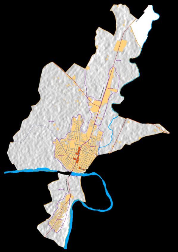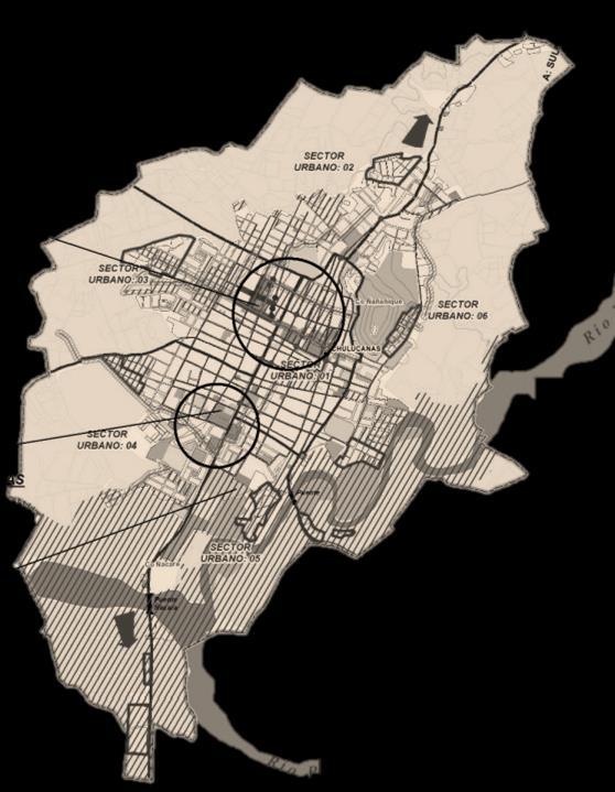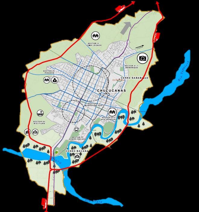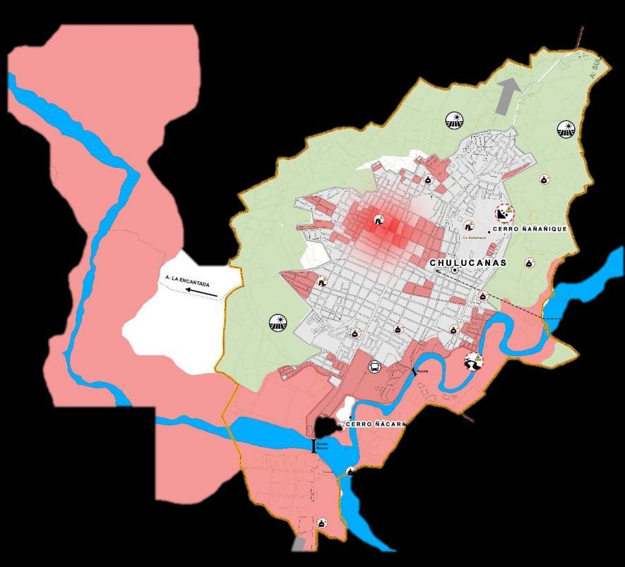 Vía peatonal LA ENCANTADA Se encuentra a seis kilómetros de la ciudad de Chulucanas y a 65 Km de la ciudad de Piura LEYENDA Muy alto Alto Área urbana critica Área ambiental 1.3