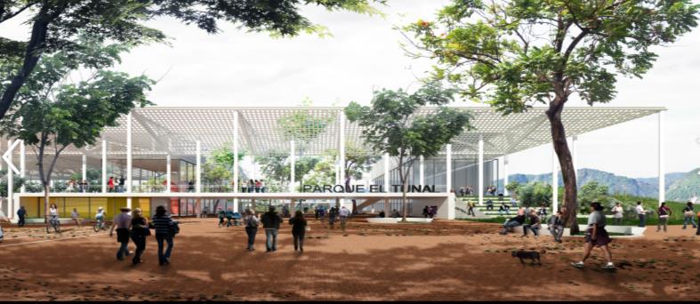 Los elementos arquitectónicos funcionan como una puerta urbana y espacio integrador que vincula la propuesta con la cuidad.