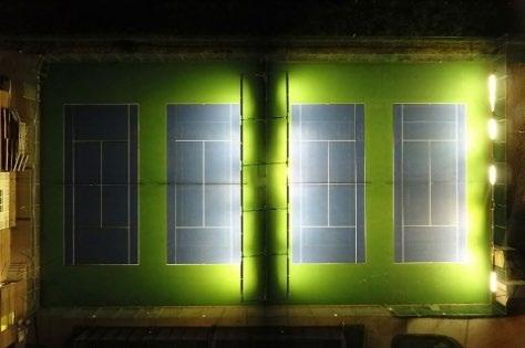 distribution to an evenly lit court. We were also able to reduce energy consumption and minimize light trespass and light pollution. Most importantly, the tennis players who frequently play on these courts were ecstatic with the results. Many provided positive feedback that the playing conditions are significantly improved and that they can now track the tennis balls better than ever before.