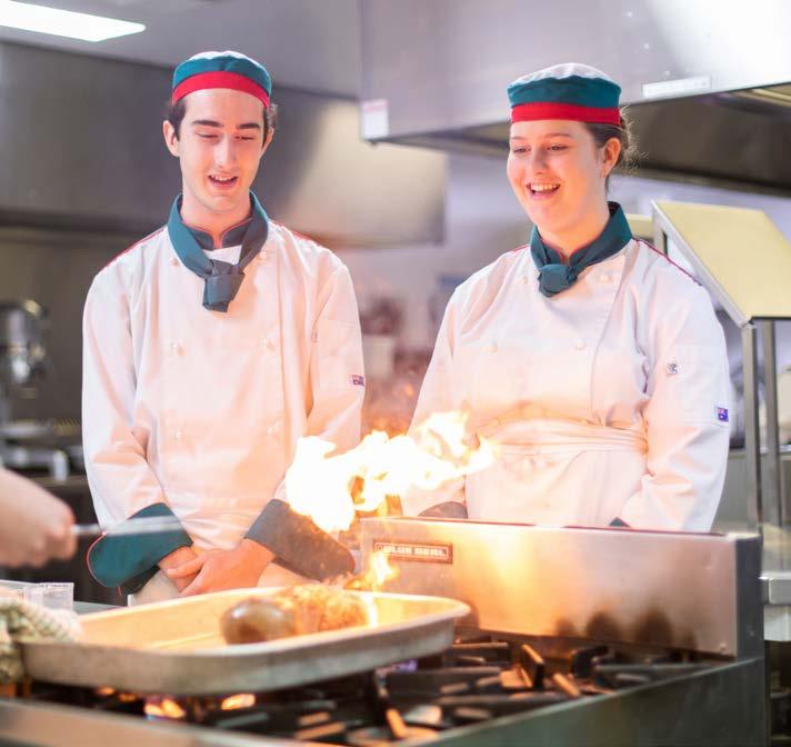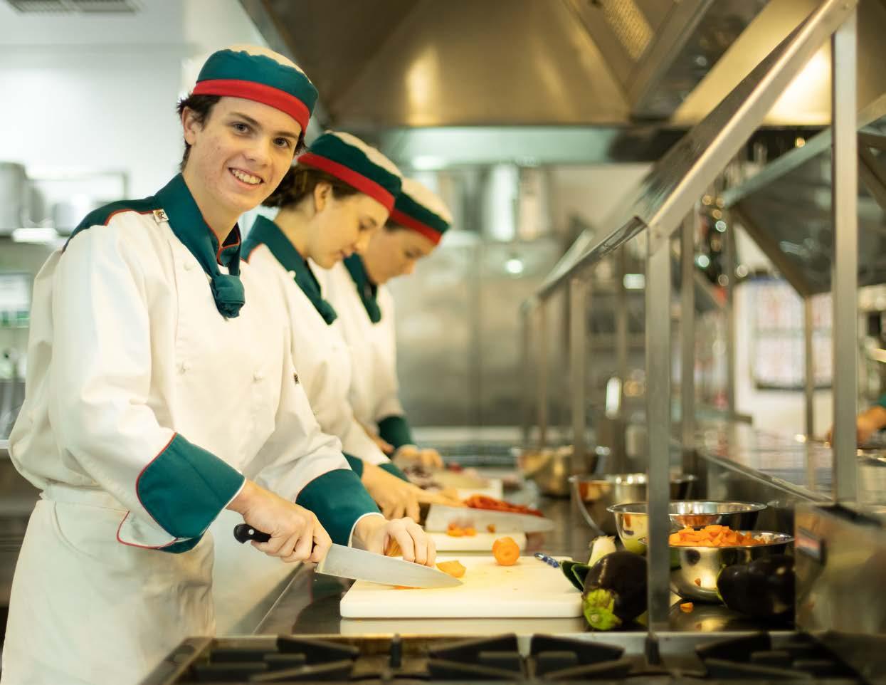 Under the guidance of qualified chefs our students are exposed to all facets of hospitality from menu design, event catering, food hygiene, preparation and presentation to front-of-house service.