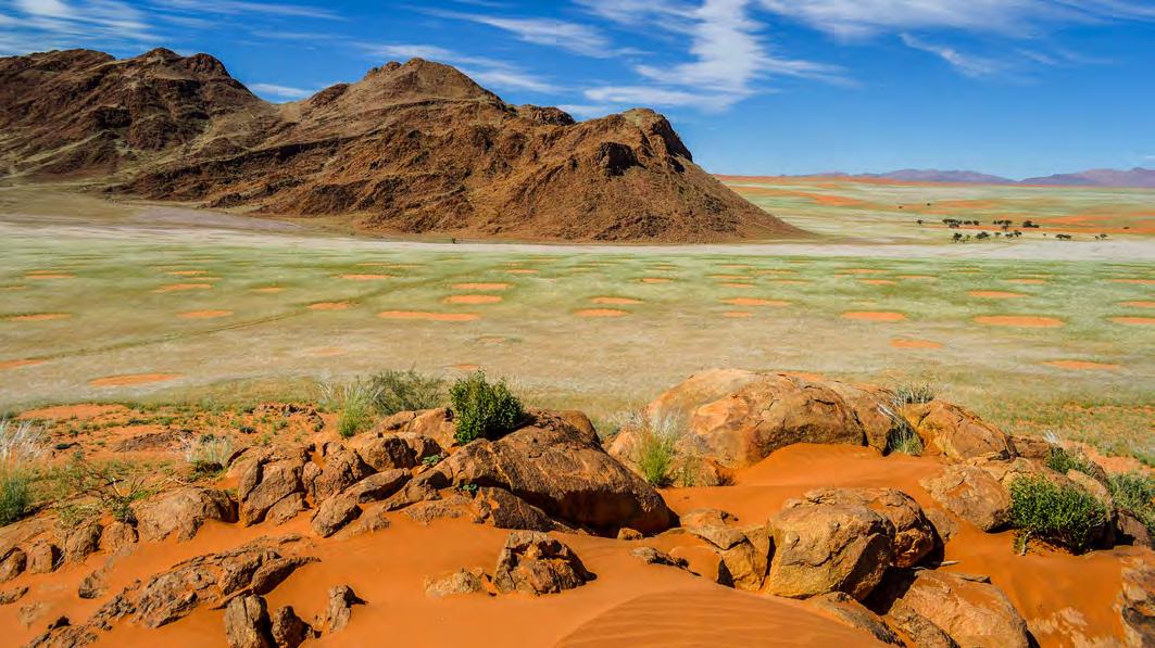 at Wolwedans. This conference took place almost exactly ten years after the first symposium held in February 2015. The article by Eberhard Hofmann outlines some of the leading theories on fairy circles which were presented by scientists at the symposium. While some scientists insist that they have solved the mystery and that they are able to explain the cause and formation of this phenomena, there is still no consensus within the scientific community. Leading theories include vegetation selforganisation, soil poisoning by Euphorbia plants and landscape engineering by termites. Our founder and former CEO Albi Brückner once said, “I find it quite refreshing that in this day and age of modern technology, no one is fully able to explain fairy circles. We don’t need answers for everything in life and it is good that we still have some things that we can’t explain, that remain a mystery.”