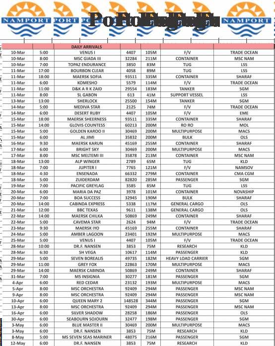 BULKCARRIER, NORDDUBAI(IMO:9894612), sailing under the flag of Panama docked at the Walvis Bay port on 7 March to load 4 000 Metric Tons (MT) Copper Cathodes. Her carrying capacity is 37 662 t Deadweight Tonnage (DWT) and her current draught is reported to be 9.5 meters. Her length overall(LOA)is179.97metersandherwidthis29meters.