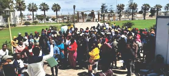 Theotherpressingissueislanddelivery The council was under fire by Walvis Bay BackyardTenants(WBBT)whofeelsaddened to learn that so far only fifty beneficiaries are plannedtoberelocatedtoFarm37.Thegroup protested in front of the municipal building andhandedinapetitionwheretheymotioned thattheybeallocatedun-servicedlandforfree atExtension7.Forbessuggesteditmightbea good time for the council to consider making moves to establish a council-owned brickmakingtosupplybricksatthemostaffordable rates. Representative of WBBT, Imanuel Festus said, “council should stop mandatory brick houses altogether and approve cheaper buildingmaterialforconstruction.”Withonly twoyearslefttomakeasignificantchangein thelivesoftheresidentsofWalvisBay,Forbes andcouncilappealtotheadministrationtofast tracktheexecutionoftheseresolutions.