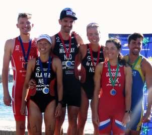 The elite winners of the Africa Triathlon Cup ChampionshipsinSwakopmund(fltr)EmilHolm, Rachel Klamer, Richard Murray, Barbara de Koning,GajdošováRomanaandMatthewWright