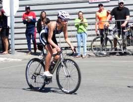 Namibia's elite Triathlon athlete Anri Krugel in actionattheAfricaTriathlonCupChampionships inSwakopmund