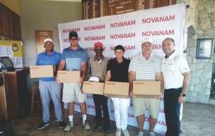 The winners Novanam March Monthly Medal (fltr) Warren Theron; Douw van Wyk; Hans Noabeb; Rina Knight; Fred van Zyl with MichaelTordesillas(sponsor).
