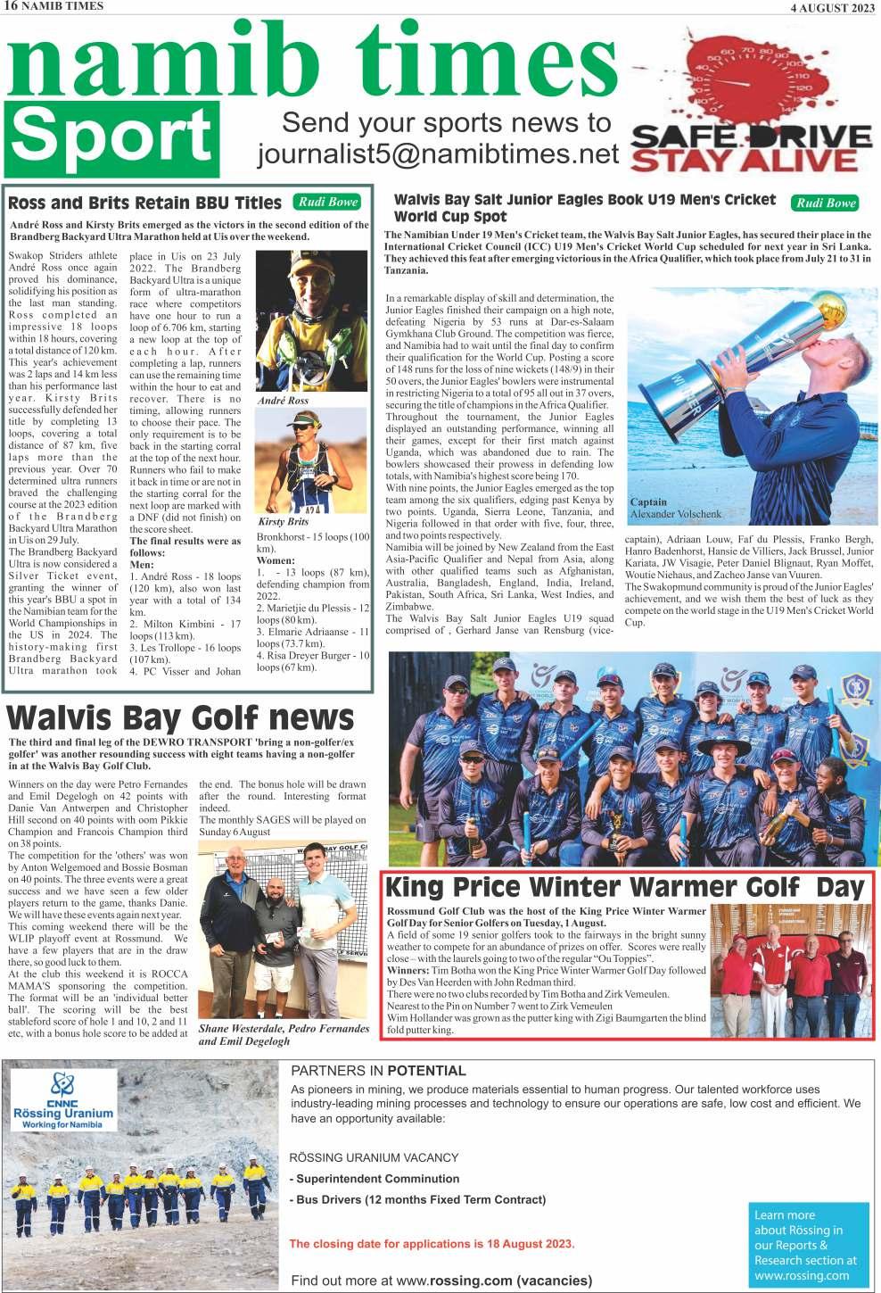 The NRU First Division league semifinals are scheduled for 12August 2023 at the HageGeingobStadiuminWindhoek.