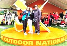 Pupkewitz Athletics team members Adara Gey van Pittius and Arizhia van der Walt with their coach Hennie Horn at the recent Nike Outdoor Nationals in Eugene, Oregon USA