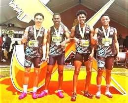 the Pupkewitz Athletics relay team that came in 5th place at the recent Nike Outdoor Nationals in Eugene, Oregon USA are Guanito Noble, Walter Geinub, Jose Kambanzera, Magano Naseb