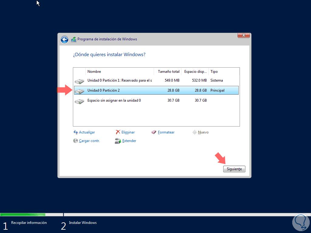 Una vez ingresemos o no la clave pulsamos en Siguiente y debemos seleccionar la