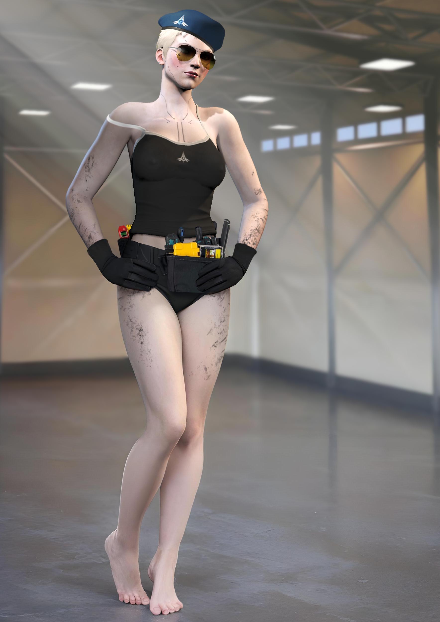 You don't see her often, as she's bending, tightening, screwing, and lubricating things in the workshop. She's also happy to take good care of your equipment. As you can see, she's not afraid to get dirty or sweaty sometimes. Her specialty is rough handling of tools. When the going gets tough, she'll get into the power loader and won't hold back. However, you won't be begging her for service and maintenance because she loves her job. "Let me take it into my own hands", as she always says.