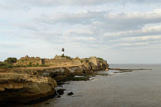 A light house representing the popular port, fort and lighthouse located at the island.