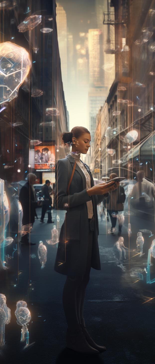 How does the technology layer transform the perception and experience of public spaces?