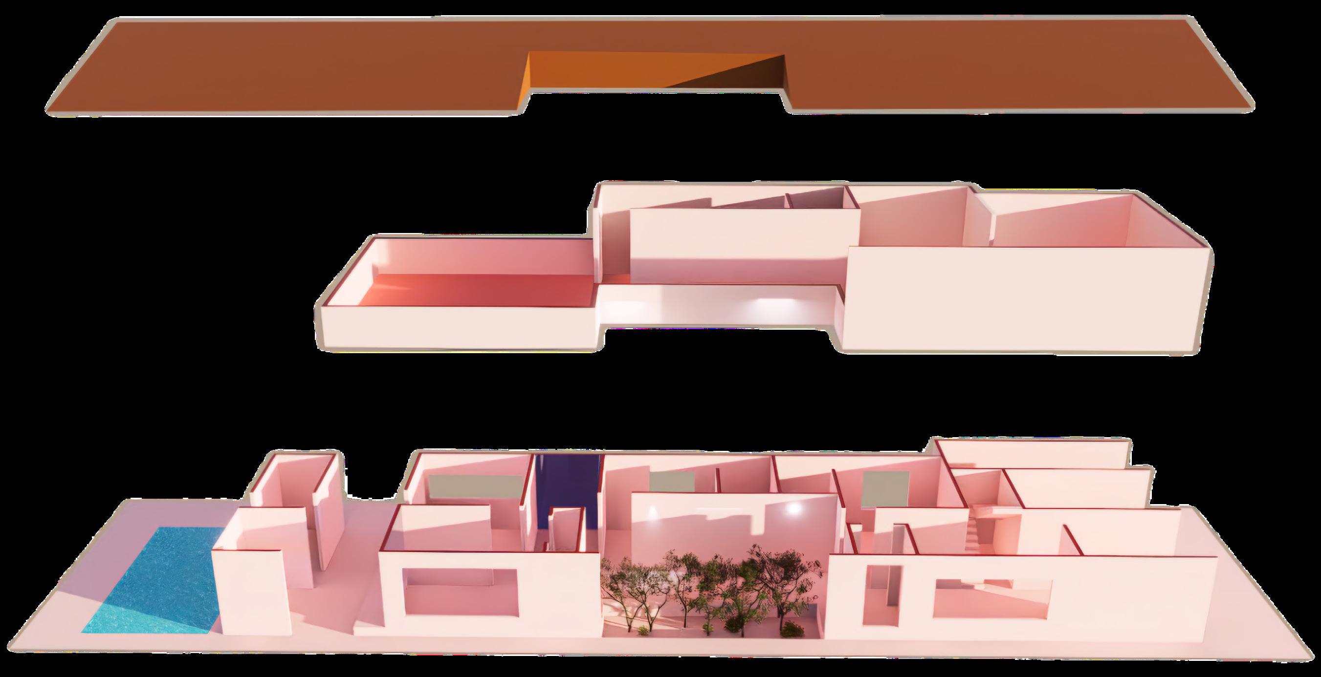 This residential project in Beypore is thoughtfully designed to blend traditional aesthetics with modern comfort, tailored to meet the client’s specific needs. Embracing the rich cultural heritage of the region, the home features traditional elements like sloping tiled roofs, wooden beams, and a central courtyard that fosters natural light and ventilation. Locally sourced, sustainable materials such as red laterite stone and teakwood are used, supporting both ecological responsibility and local craftsmanship. The design follows Vastu Shastra principles for spiritual harmony while incorporating contemporary amenities like smart home technology for enhanced comfort. The surrounding landscape, with native plants and tranquil garden spaces, further enriches the connection between indoor and outdoor living, creating a home that is both timeless and practical.