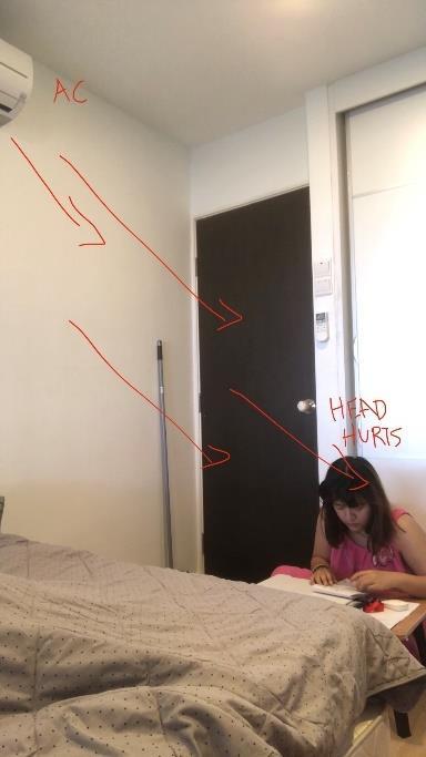 5. The air conditioner placement makes my head hurts I need to do some work at the floor because that is the only space I can use but because of the AC and how small the room is, my head hurts after half an hour. So, the solution is place it on top of the door so the air flow is not directed straight to me, the AC is also old and stops when I don’t even do anything