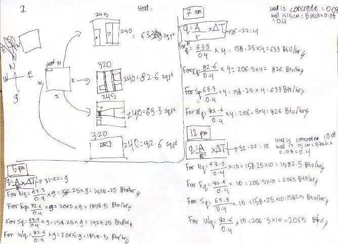 - THE WALL WISE, SOUTH WALL HAS SMALLER BTU/hr BECAUSE THE RESISTANCE IS HIGHER, THE HIGHER THE RESISTANCE THE LOWER THE TRANSFER (EXCEPT THE NORTH WALL FOR 7AM. IT IS SMALLER BECAUSE THE SOUTH WALL AT 7AM IS CLOSER TO THE LIVING ROOM WHICH HAVE WINDOWS TO THE SKY OUTSIDE)