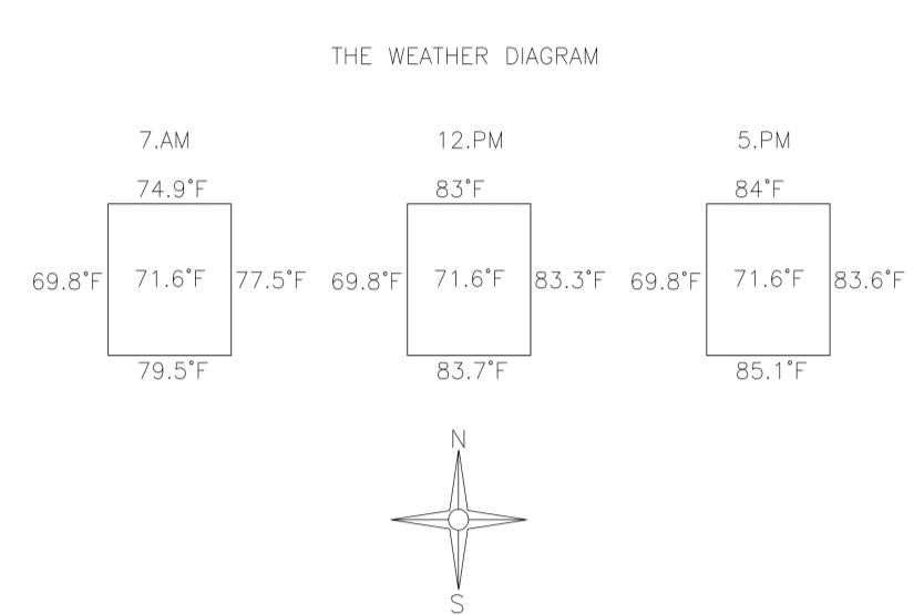 AS YOU CAN SEE THE SOUTH PART OF WALL, THE TEMPERATURE IS HIGHER BECAUSE IT IS CLOSER TO THE WINDOW STRAIGHT TO THE SKY