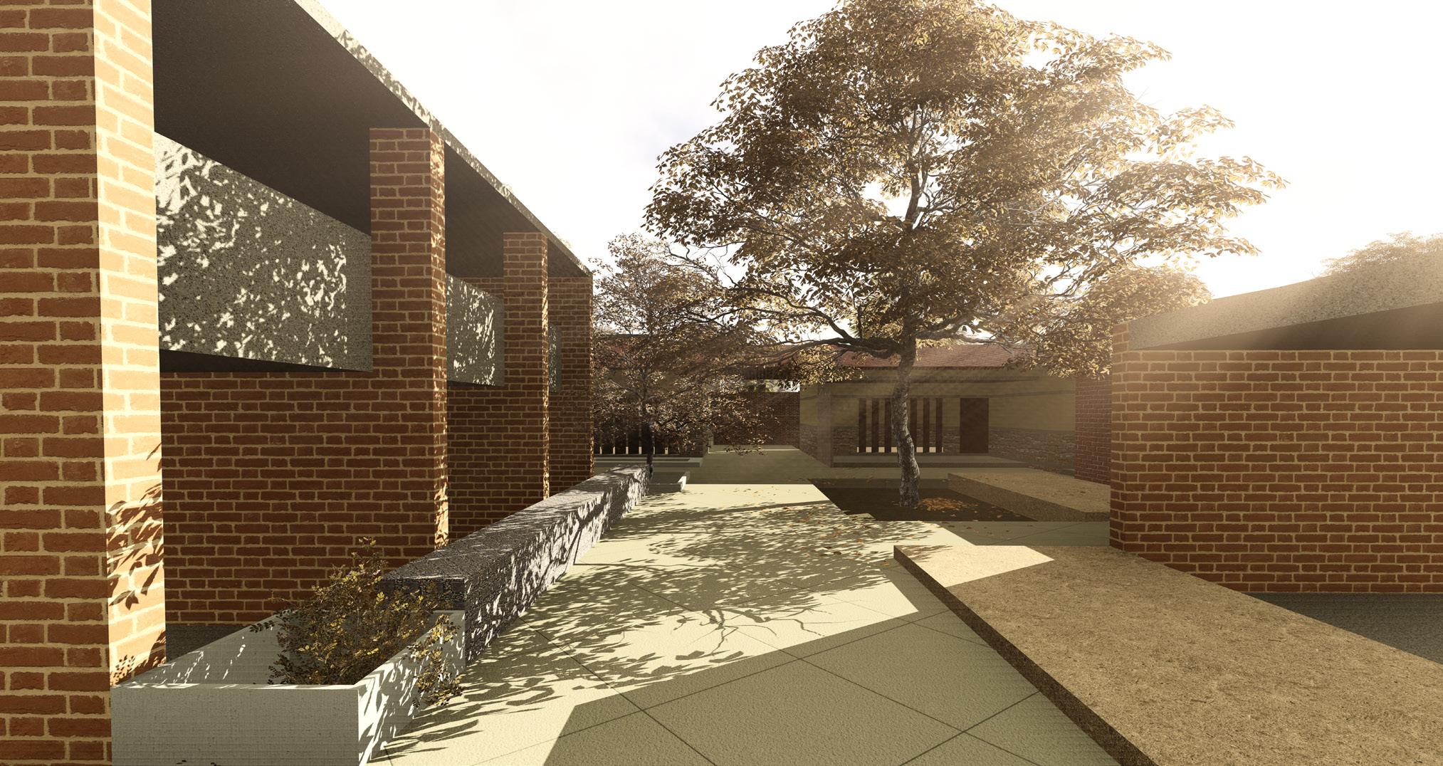 01 Reception 02 Office space 03 Small open court (chowk) 04 Restroom 05 Discussion room 06 Semi open (deli) 07 Library archive 08 Marketing office 09 Semi open pavilion 10 Technical training rooms
