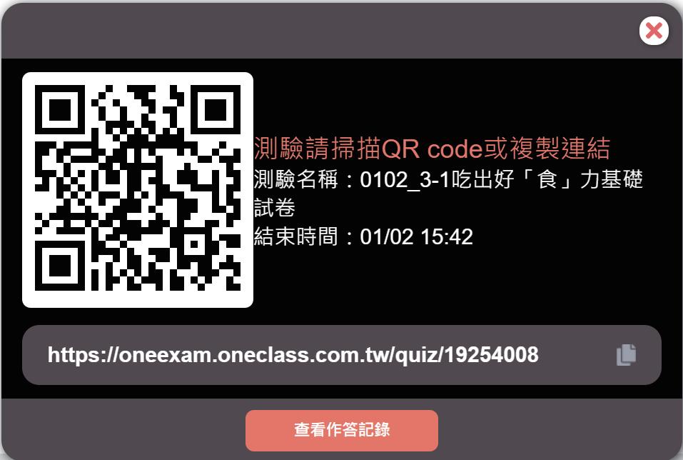 掃描QRCode或點擊連結 即可開始進行測驗