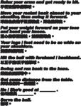 體育雙語 經典句型 1 Good job! /Excellent!/ Awesome!/ Well done. 做得好! 2 What is ___________'s strengths? OO的優點是什麼呢? 3 Try your best. Don't push yourselves too hard. 盡力而為就好,不要勉強。 4 Let's give ___________ a big hand! 我們給OO同學一個熱烈的掌聲! 正向鼓勵篇 Rhythmic Breathing [ˋrɪðmɪk briðɪŋ] 韻律呼吸 Back Floating [bæk ˋflotɪŋ] 仰漂 Trade Water [tred ˋwɔtɚ ] 立泳踩水 Front Floating [frʌnt ˋflotɪŋ] 俯漂 Accidental Drowning Survival 意外落水自救法 國中體育 配合課本第一冊單元6-2 自救求生 臨危自保(P.138-139) 數位資源 雙語資源 教學準備 備課與習作 體育教材 健康教材 課程導覽 六冊架構 雙語主題掛圖
