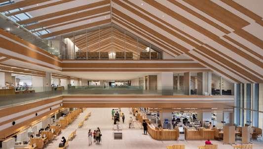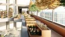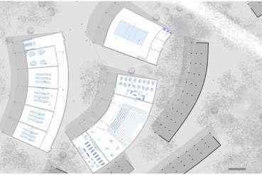 Composé d’un grand bâtiment sur trois étages, d’une terrace et d’un hôtel, ce projet se distingue par son toit unique envoutant trois étages intègrant un restaurant, un hall et des pièces de réunion.
