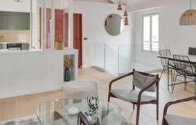 FR. Cet appartement privé de 85m² situé à Boulogne Billancourt a été livré en 2021. La particularité de ce projet consistait à l'apport de lumière, le terrain étant enclavé au fond d'une parcelle.