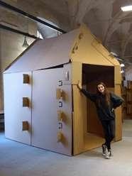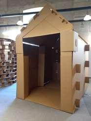 FR. Chaque groupe d’étudiant exploite les propriétés du carton afin de proposer des idées originales d’abri.
