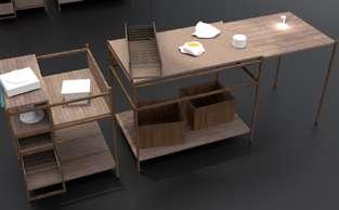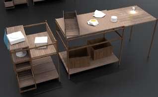 Dans l’ensemble les établis n’ont pas une forme très épurée car nous avons valorisé la simplicité d’assemblage ainsi que la génération d’accidents afin de permettre une appropriation plus fluide et personnelle. A l’image des productions matérielles que nous voulons dynamiques et ouvertes à divers opportunités, l’objectif est d’avoir un meuble tolérant le changement.