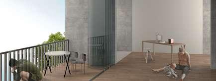 La deuxième semi-privé, sous forme de terrasse, forme un seuil entre la partie publique et les accès de ces logements.