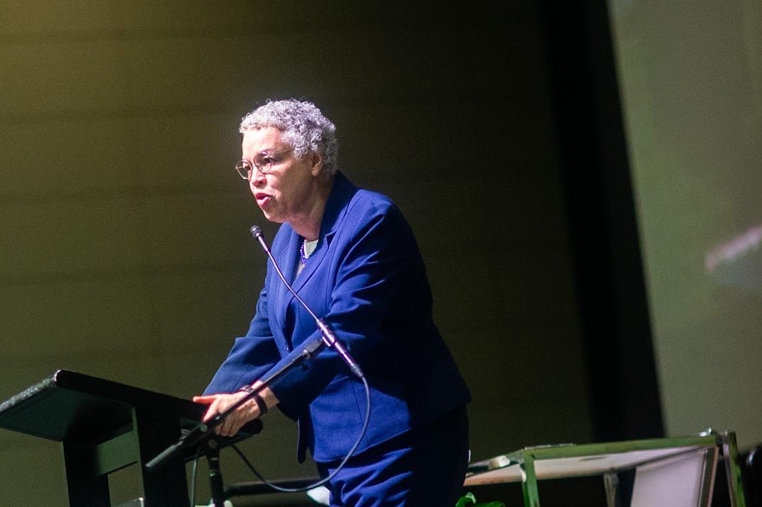 MWRD Commissioner Eira Corral Sepulveda (podium)