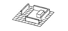 The individual module takes the separated form and sits on a grid system of concrete pavers. Using two smaller paver sizes in addition to the first, the paver system is scattered outwards, blurring the boundary of the hardscape. Each building stretches and shrinks to accommodate its program needs, and the pavers undulate accordingly.