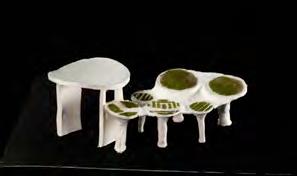 Gathering spaces for five people and for twenty people with weatherproofing and rain cover.