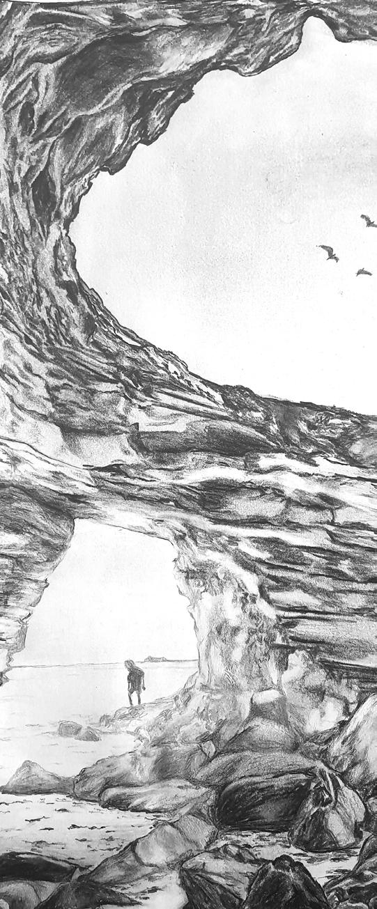 After secondary school, I completed various art projects, both for myself and for commision. The images to the right depict a charcoal sketch of a stairwell, a drawing of a cave from a vacation photo, and a mural for a paediatric consultation office. Most of my personal work is monochrome, focusing on light, shadow and texture separating them from the hues through direct observation.