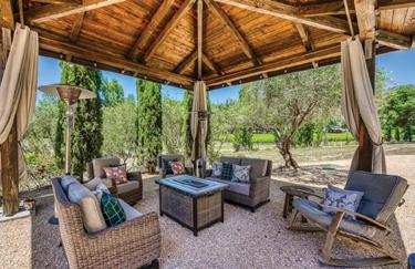 Stunning example of Mediterranean Revival architecture, this sp rawling villa embodies classic Wine Country Living. With single-level stucco facade, terracotta barrel roof tiles, and a rched windows. Offering a flowing, open floor plan, travertine flooring, crown moldings, French doors, and fourteen-foot-high cathedral ceilings. Chef’s kitchen with a Subzero refrigerator, Viking range with custom stainless hood, trimmed in copper. Spacious primary suite with vineyard views and an additional luxury suite with s eparate entrance. Picturesque pergola, outdoor spa and plans for a swimming pool. Property offers security gated entrance and gate house.