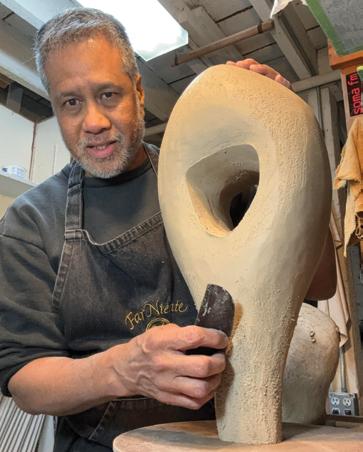 a deeper meaning to his pieces. Yanos’ process often begins with his looking at a previous work, considering it, and then using it as either a pushing-off point to move in another direction or as the basis for a variation on a theme. Working the piece through to completion is about following an urge and then letting the clay do the talking and the telling of the story.