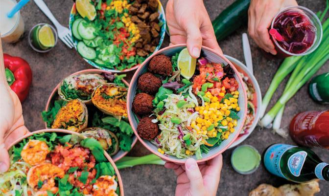 HERITAGE EATS Heritage Eats offers a fast-casual, globally-inspired menu that thinks and acts locally. The popular restaurant serves up tacos, wraps, baos, rice and salad bowls made-to-order with choice of protein, toppings and sauces with unique flavor profiles from all over the world. The Dirty Fries, Papa K’s Burger and Haven Wings are local favorites.