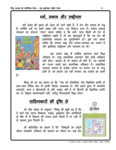 /keZ] lekt vkSj jk”Vz~h;rk /keZ ladV dh iqdkj dks ysdj tks vkxs c<+rs gSa] os ns’k vkSj lekt ds ’k=q gSa] D;ksafd /keZ ij dHkh ladV ugha vkrk] ;g f=dky lR; gSA ges’kk lekt O;oLFkk dk lapyu ^jkT;* djuk pkfg, u fd /keZA vkt fdlh Hkh ns’k esa jk”Vz~h;rk c<u+h gS rks ;g egRoiw.kZ gS fd ml ns’k dh lkekftd O;oLFkk dk iqujfuekZ.k gksA bls ;kn j[kuk pkfg, fd lekt jk”Vz~ vkSj ’kklu&O;oLFkk dk vk/kkj gS vkSj blhfy, jk”Vz~h;rk vkSj ekuork dk HkhA ,d Lora= jk”Vz~ esa /kkfeZd Lora=rk Lo;a fl) vf/kdkj gSA ijarq lkekftd Lora=rk tSls dksbZ vf/kdkj ugha gksrkA lekt ds rks drZO; gh gksrs gSaA mu drZO;ksa dk ikyu lcls cMk lkekftd vf/kdkj gSA lkekftd O;oLFkk lekt ds izR;sd lnL; ij leku :i ls ykxw gksrh gSA tks lnL; mls ugha ekurk] og jktnaM dk Hkkxh gSA fo”.kw th dk ;g dguk Fkk fd ^^ns’k dks vkS|ksfxd vkSj oSKkfud izxfr ds lkFk&lkFk uSfrd {ks= esa izxfr furkar vko’;d gSA ;fn gekjs g`n; esa ekuoh; Hkkouk,Wa] lR; o bZekunkjh ds izfr vkxzg ugha gS rks fdruh Hkh oSKkfud izxfr dj ysa] foKku dY;k.kdkjh ugha] vfirq fouk’kdkjh fl) gksxkA