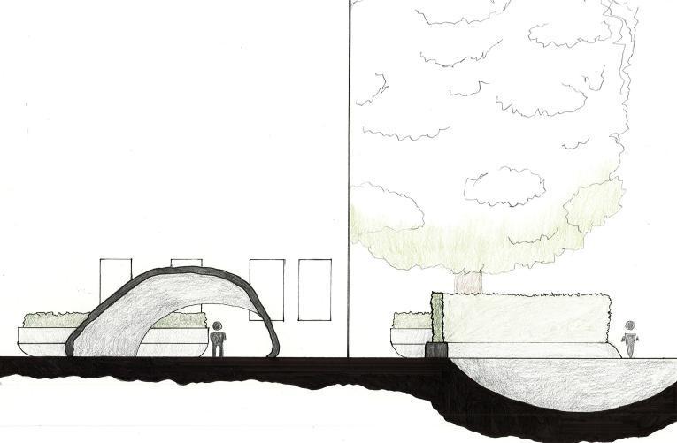 Our third prompt asked us to design a courtyard between the architecture building and the library. The design of the courtyard was left for us to decide, it could be anything as long as we had intent and a good reasoning for our ideas. I chose to design a skatepark outside the library with shrubs and hedges with the prime utilization of sound absorption and privacy.
