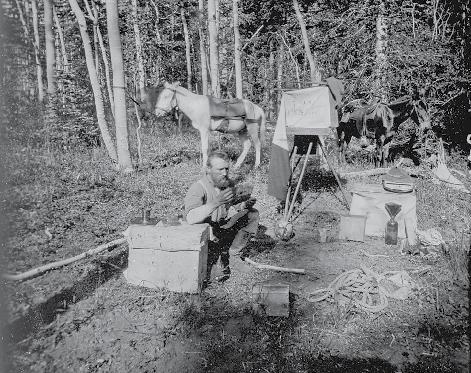 John K. Hillers was a federal government photographer for the U.S. Geological Survey and the Bureau of Ethnology. He began as a boatman in 1871 during John Wesley Powell’s second Colorado River expedition and by 1872 had become the expedition’s chief photographer. This photograph is by and of Hillers at the Aquarius Plateau in south-central Utah taken during that expedition. He later became the first staff photographer for the Bureau of Ethnology, and his extensive career with both organizations resulted in approximately 20,000 negatives.
