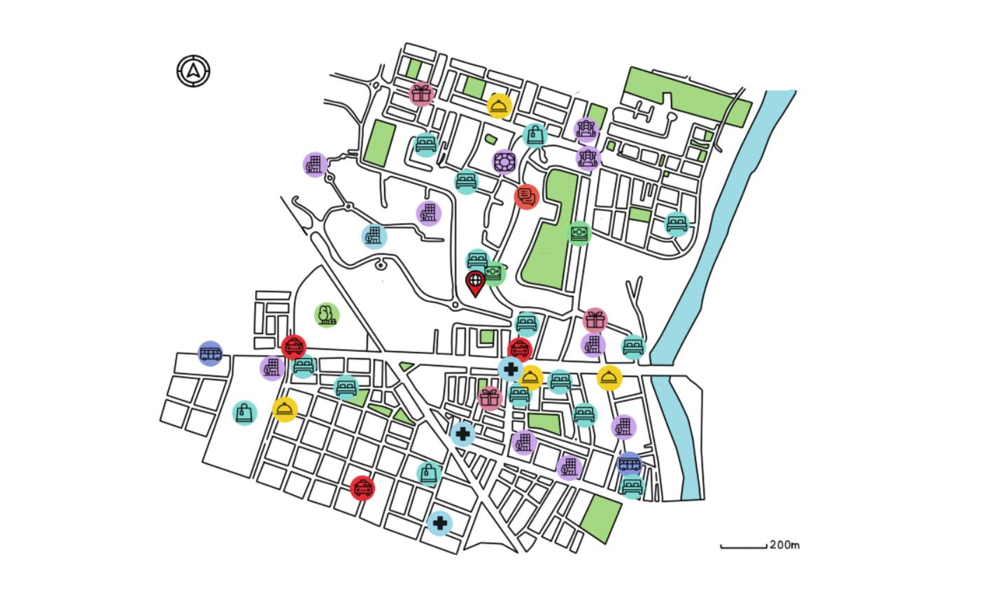 La edificación intercala niveles de piso a lo largo de su área. Cuenta con un amplio estacionamiento y áreas verdes con relieves que suman el área no techada. La superficie construida cuenta con distintas visuales hacia dónde se dirige la luz y la ventilación. El trapezoide suma un total de 4.295,00 m² aproximadamente. Cuyo perímetro suma 300,00 m alrededor de las medidas cercanas a los 125m, 35m, 65m y 80m. (SIGRID, s.f.).