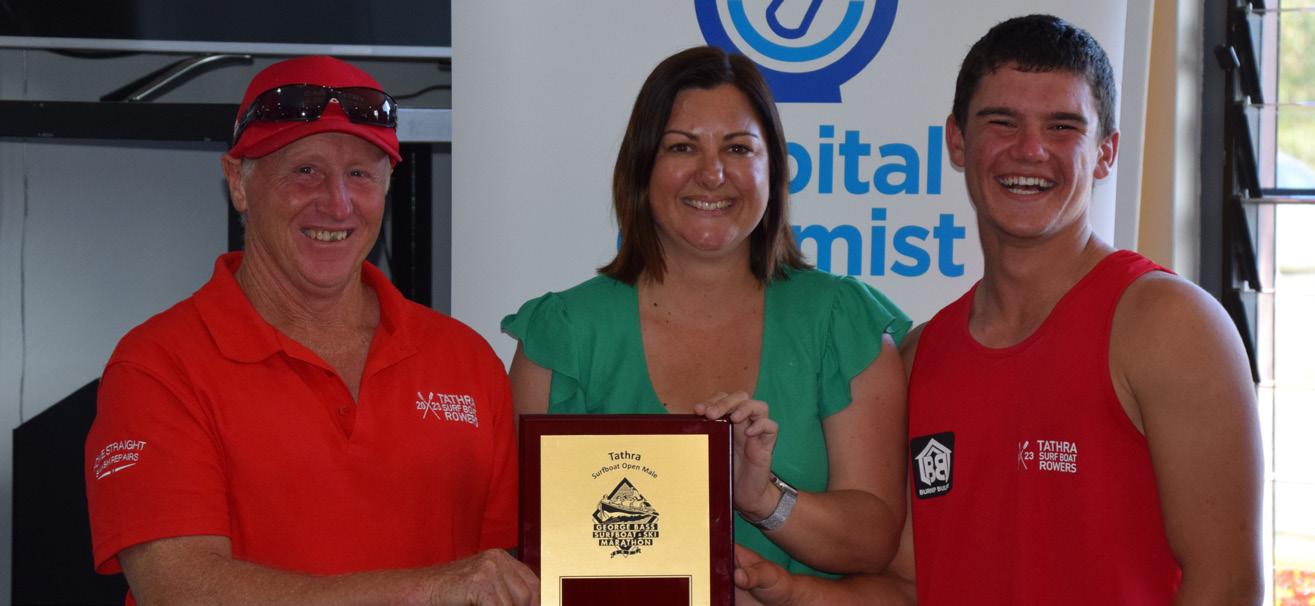 Then we had three competitors race with the red and white Tathra cap; Brendan Constable (sweep) and Rod Patmore rowed for the Tathra Male Veteran crew, winning the division 7 from 7 legs and finished with the second fastest overall time (all divisions) Jorge Constable competed for Tathra’s Male Open crew in his GBM debut The youngest competitor in this year’s Bass, Jorge has a new passion for surfboat rowing after a memorable week at sea