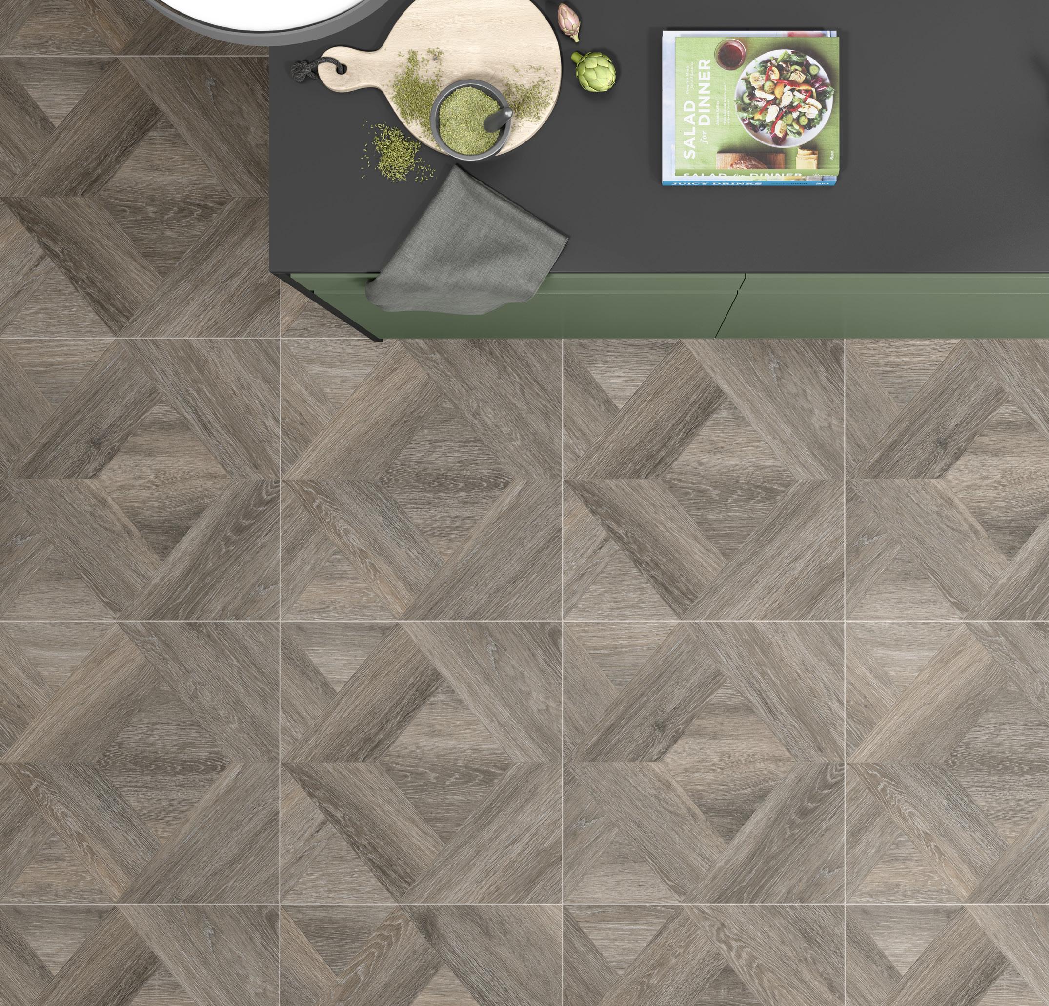 is filled with tiles that enhance the sense of movement thanks to a skilful blend of natural materials. When it comes to wood porcelain, there is no risk of monotony thanks to the colors that range from warm coffee to icy ocean gray. It is a collection that is guaranteed to build character into any room. Ancona 2.0 recreates a marquetry effect that exudes all the comfort of wood in a choice of five tones.