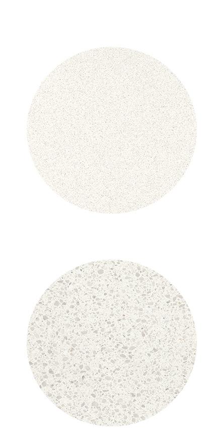 The sophistication and charm of traditional Venetian Terrazzo are brought back to life with a contemporary twist in the flake collection. Venetian Terraz- zo, a material resulting from the amalgamation of chips of marble, stones, cement components and natural oxides, is widespread in prestigious residences across the globe, from venice during the italian renaissance to ele- gant liberty-style buildings. In Blake, irregular chips of pebbles and marble make up an even pattern packed with details, available in small and medium grain size, in cold and warm hues, favouring contemporary combinations and creative games of volumes and surfaces.