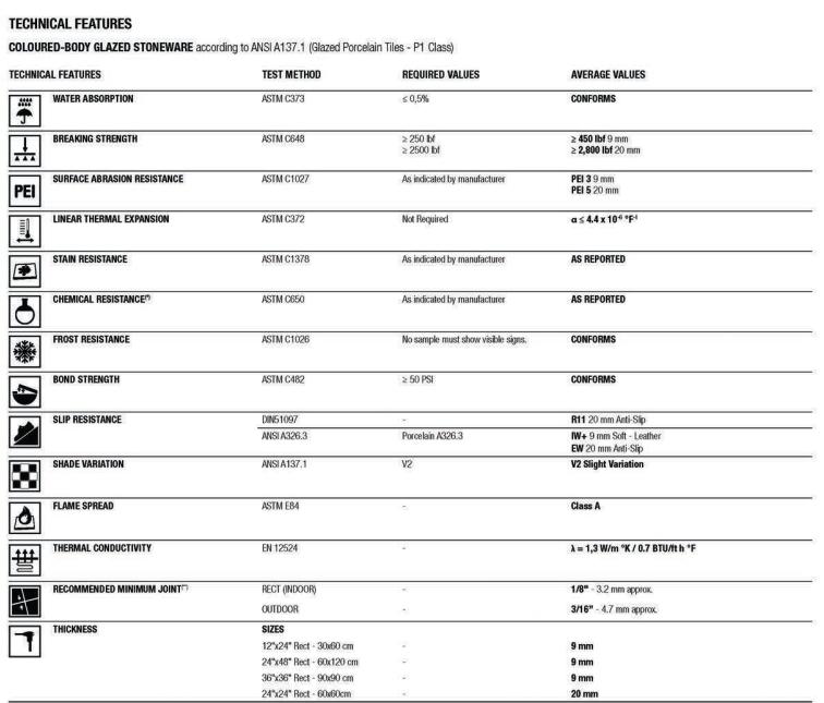 All tile contain a special anti-slip finish and pass all wet condition requirements.